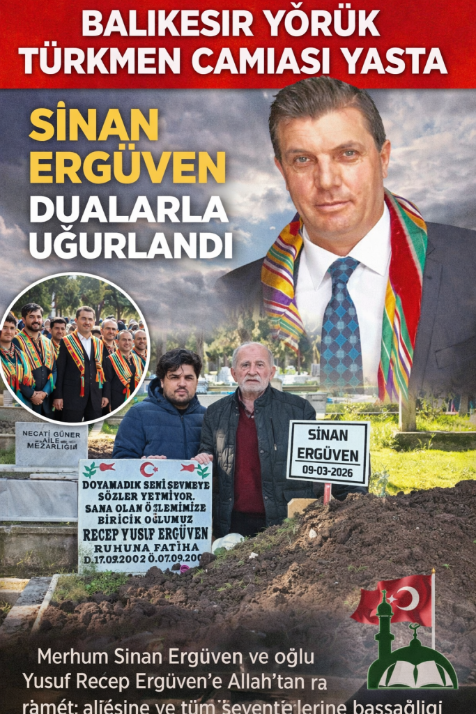SİNAN ERGÜVEN BEĞİMİN ARDINDAN… Sinan Ergüven,, Balıkesir sosyal hayatında, son on yıl içinde, adından – yerel siyasetçilerimizden daha çok – söz edilen bir gönül ve hizmet adamı.. O; 2000’li yıllardan bu yana gösterdiği gayret ve özveri ile Balıkesir’deki Yörük Türkmen derneklerini bir araya getirerek bir federasyon çatısı altında kaynaştırdı. Bir ihtiyacı olan, bir problemi bulunan her kim olursa olsun kapısını çalan herkesin derdine ortak olmaya çalışırdı. Bugün bu güzel insanı, hemşehrileri ve Yörük Türkmen gönüldaşları olarak Başçeşme Mezarlığındaki Aile Kabristanında, oğlu Yusuf Recep’in yanında dualarla Cenab-ı Allah’ın rahmetine uğurladık. Oğlu Yusuf 17 yıl önce, 9 yaşında bir trafik kazasında vefat etmişti. Ömrü vefâ etseydi, bu yıl 26 yaşında bir delikanlı Yörük beyi olarak, babasının hayallerini gerçekleştirme gayretinde olacaktı. Onlar şimdi baba-oğul, Cennet bahçelerinde, Liva Sancağı altında kucaklaşıp hasret gidermişlerdir. Mezarları başında İKİ YUSUF kalakaldı: başlık ve detaylı makale Biri; vefatından 3 ay önce, kurucusu olduğu Balıkesir Türkmen Federasyonunu teslim ettiği genç Yörük beyi Yusuf Alfat , İkincisi; onu önce Allah’a, sonra da kendisine emanet ettiği Alperen Yusuf Akgül hoca.. Sinan Ergüven beğimizin ve Recep Yusuf evlâdımızın makamları âli olsun. RUHLARINA EL-FATİHA..