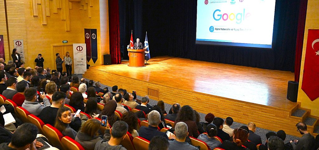 Programda sunum yapan Google Türkiye Eğitim Danışmanı Özgür Mehmet Kütküt, dijital habercilik ve yapay zekâ alanındaki gelişmeleri katılımcılarla paylaştı.